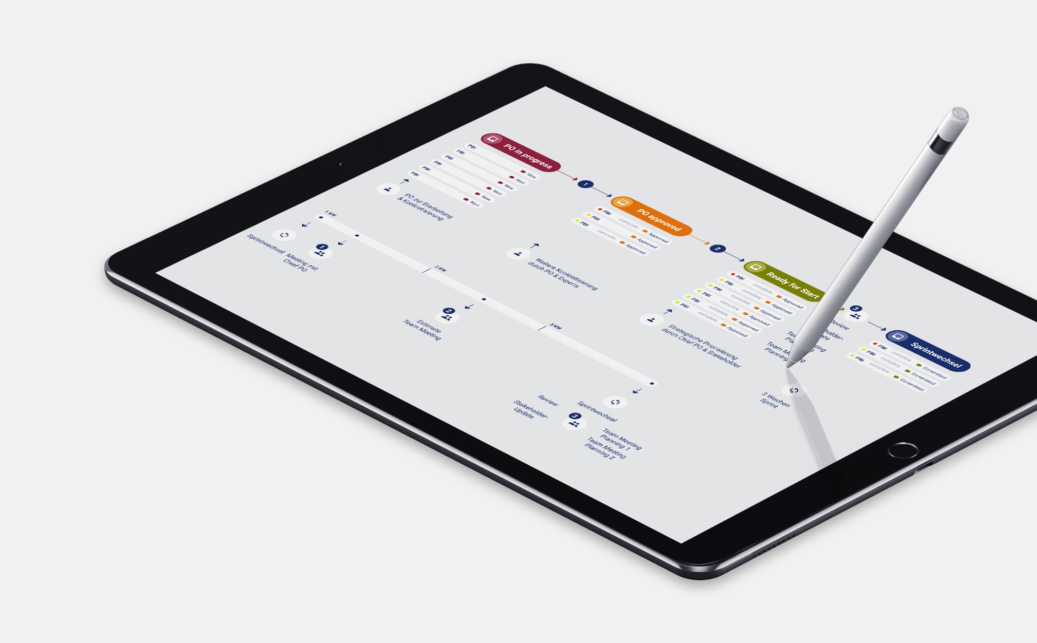 Als Coaches und durch Beratung wurde der gesamte SCRUM-Prozess dahingehend angepasst, dass eine Anforderungs- sowie User Experience-Entwicklung möglich ist. Durch die Optimierung gelang es, das Gesamtprojekt in Sachen Teamstrukturen sowie Weiterbildungsmaßnahmen als auch hinsichtlich der Zieldefinition voran zu bringen und wieder eine stabile Entwicklung herzustellen.