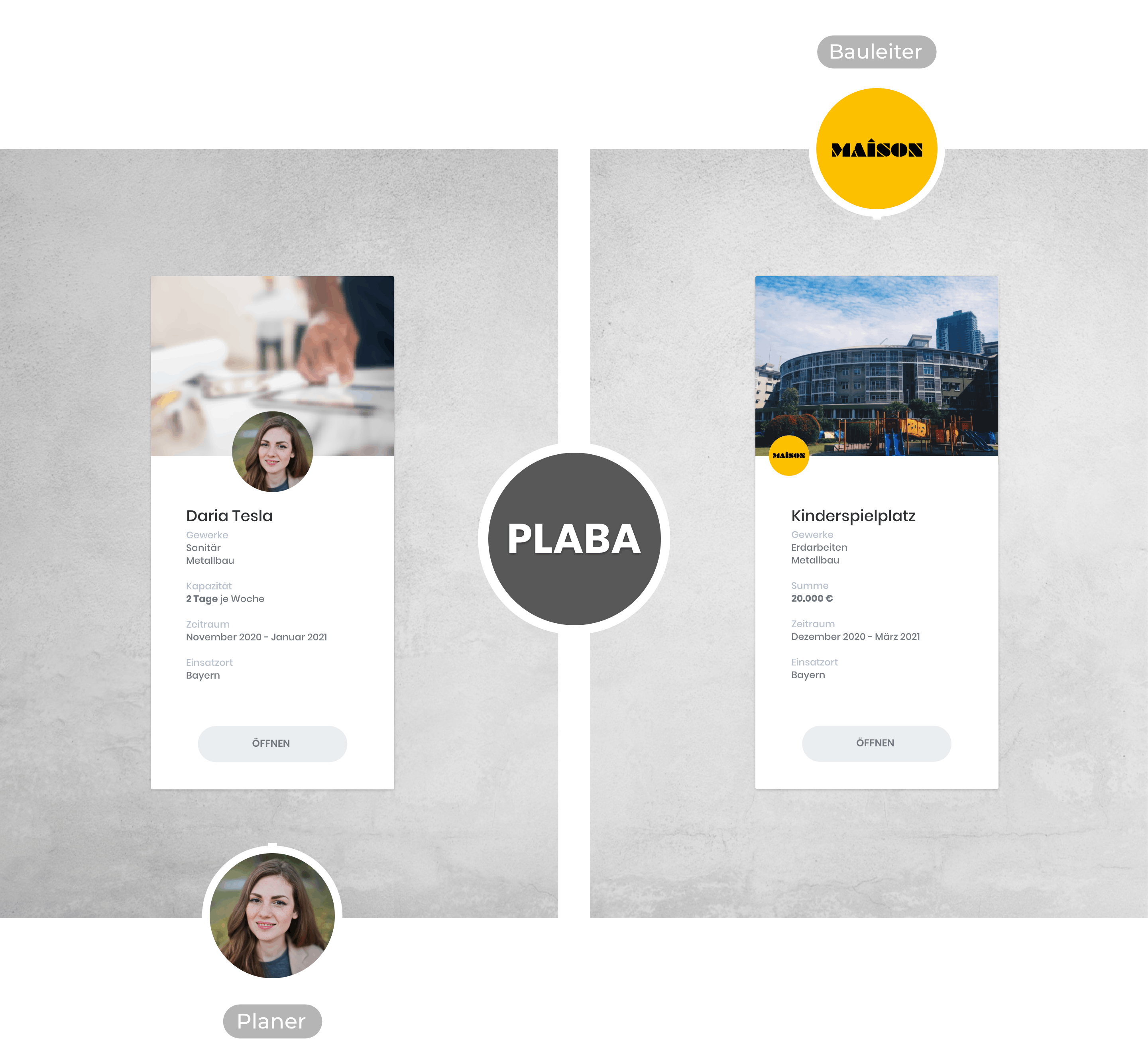 Service DesignDie Online Plattform PLABA hat es sich zur Aufgabe gemacht, die Lücke zwischen Projektgebern und Auftragnehmern mit Hilfe eines Netzwerks zu schließen, welches Planer und Bauleiter direkt und einfach verbindet. Um solch ein Unterfangen adäquat und nutzerorientiert umzusetzen, wurde die Plattform im Rahmen des Service Designs von Grund auf neu konzipiert.